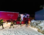 Bergung eines hängengebliebenen Sattelszuges.