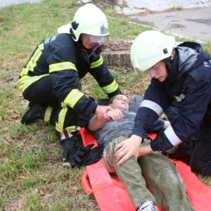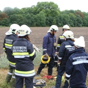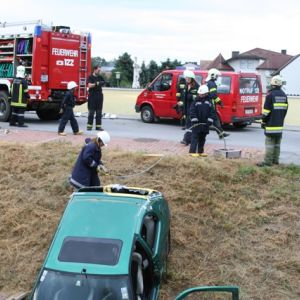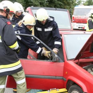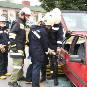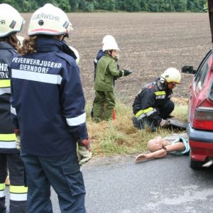 Nach einer Grillerei klang der Abend beim Lagerfeuer und bei gemütlichen Spielen aus, ehe endlich Nachtruhe einkehren konnte. Nach einem ausgiebigen Frühstück am Sonntag schrillte der Pager abermals Alarm: In der Bahnstraße kam es zu einem schweren Unfall, bei dem der Beifahrer im Fahrzeug eingeklemmt wurde und ein Passant unter dem Fahrzeug schwer verletzt aufzufinden war.