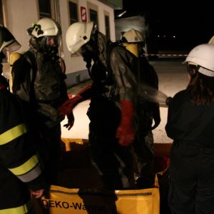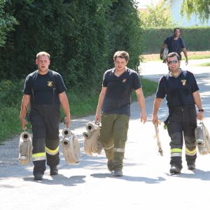Sonntag vormittags musste dann noch ein Brand gelöscht werden. Herausforderung dabei war die Aufstauung des Göllersbaches. Auch der Wasserwerfer kam dabei zum Einsatz.