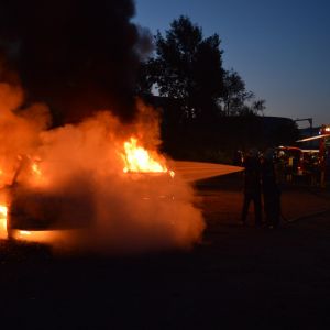 Am frühen Morgen galt es für die Feuerwehrjugend einen Fahrzeugbrand unter Kontrolle zu bringen. Hier wurde ebenfalls wieder mit Schaum gearbeitet.
