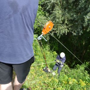 Abschließendes Szenario war dir Rettung eine abgestürzten Person mittels Seilrutsche. Dabei wurde der Umgang mit dem Greifzug und diversen Anschlagmitteln beübt.