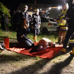 In der Nacht musste eine Menschenrettung nach einem Unfall mit eingeklemmter Person durchgeführt werden.