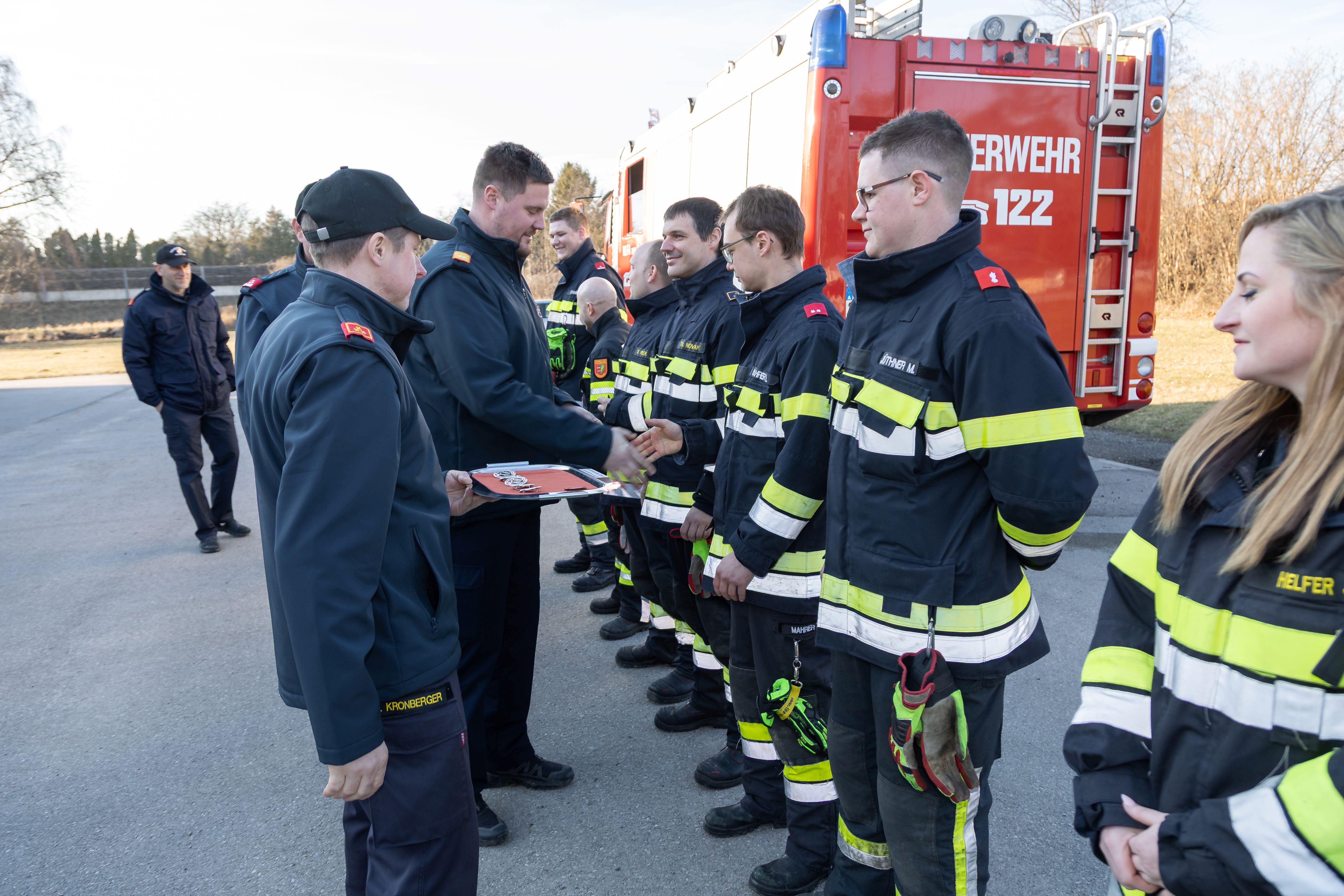Nach ein paar kurzen Worten von BR Hofmann, BR Schauhuber und HBI Florian fand die Übergabe der begehrten Abzeichen statt.