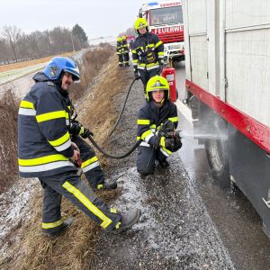 Zwischen Obermallebarn und Göllersdorf entstand bei einem mit Schweinen beladenen Viehtransporter aufgrund eines technischen Defektes an der Hinterachse des Hängers eine Rauchentwicklung.
