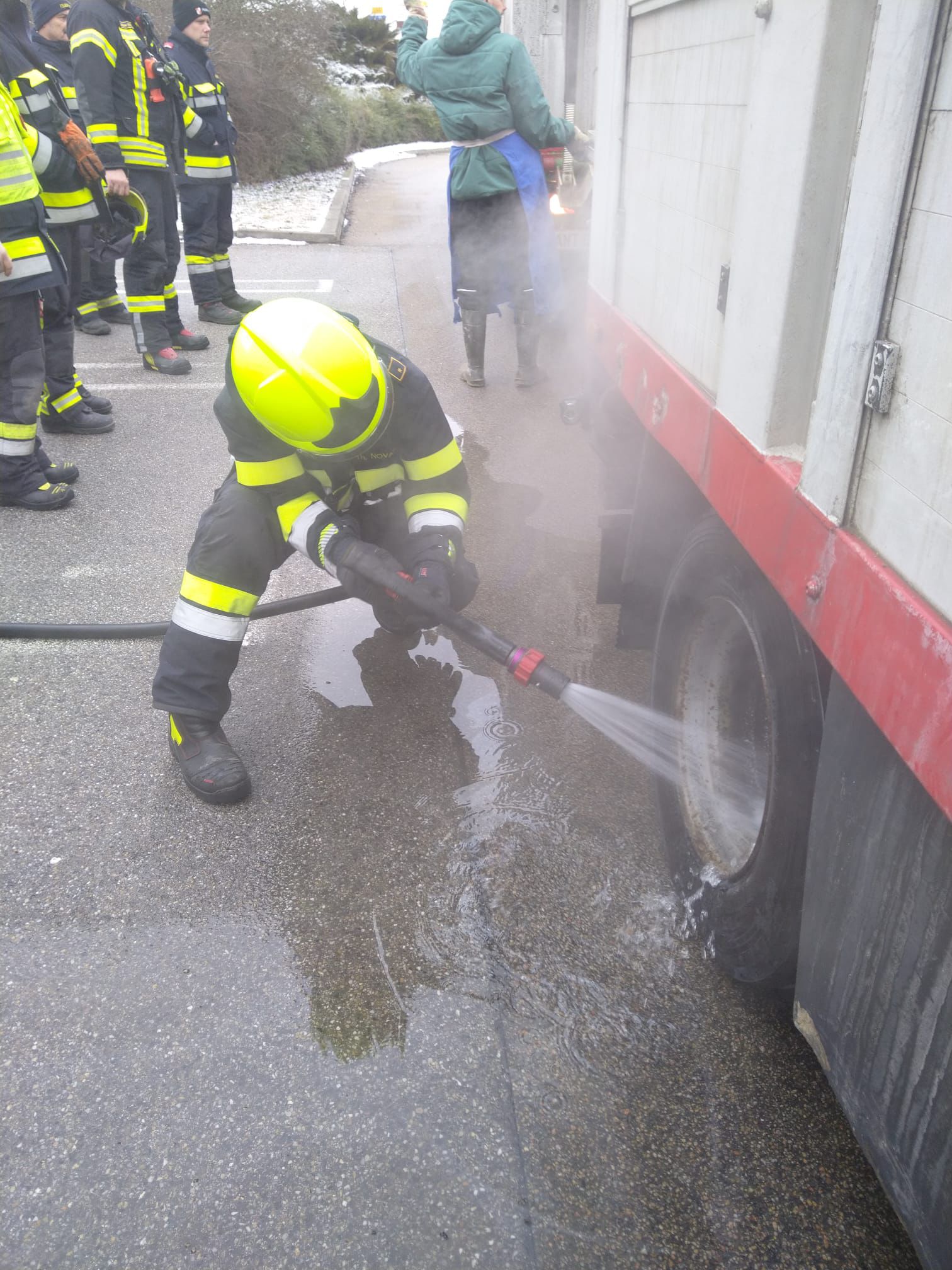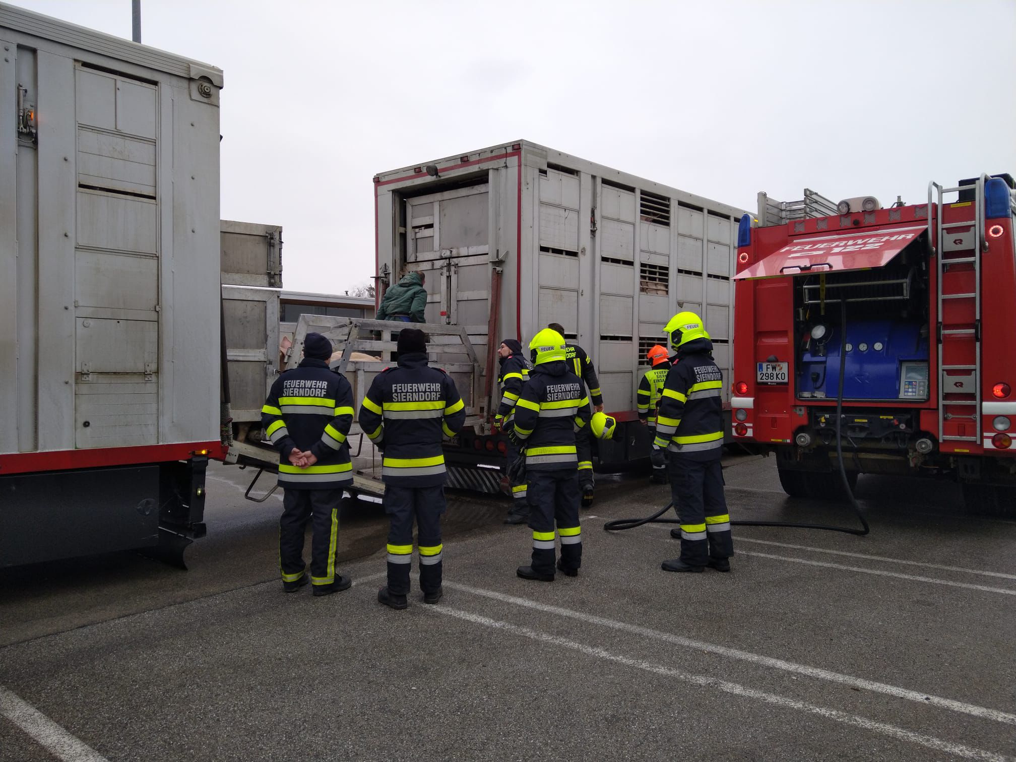 In weiterer Folge wurde der LKW-Zug unter mehrmaliger Kontrolle und Abkühlung zu einem Parkplatz bei der Abfahrt Göllersdorf geleitet, wo die Schweine in einen Ersatz-LKW umgeladen wurden.