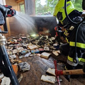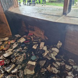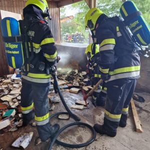 Trotz der engagierten Löschversuche hatte sich bei unserem Eintreffen bereits ein kleiner Brandherd im Inneren der Hütte gebildet. Unter Atemschutz konnte das Feuer aber rasch mit einem Hochdruck Strahlrohr gelöscht werden.