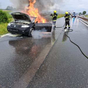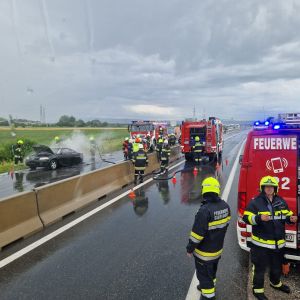 Mittwoch Nachmittag wurden wir gemäß Alarmplan gemeinsam mit der FF Stockerau zu einem Fahrzeugbrand auf die Schnellstrasse S3, RiFb. Kleinhaugsdorf zwischen Stockerau und Sierndorf alarmiert.