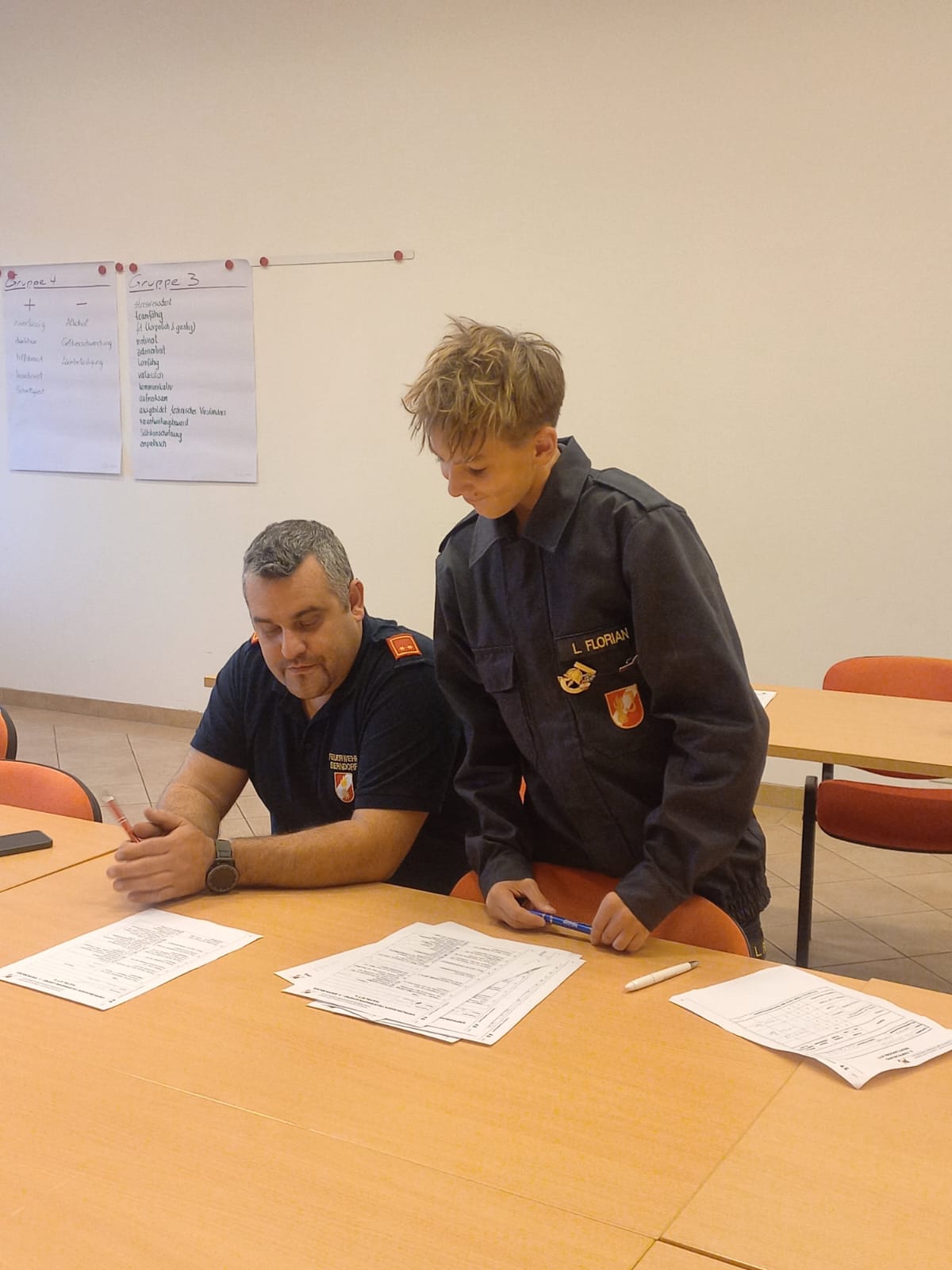 Dabei müssen die Kids sowohl theoretische Fragen beantworten, als auch Geräte für den technischen Einsatz und den Brandeinsatz im Fahrzeug finden und deren Verwendungszweck erklären.