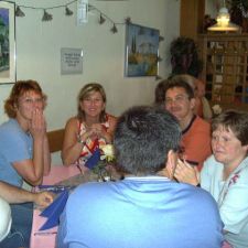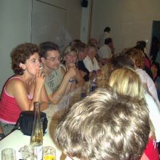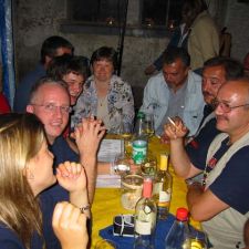 Das Abendessen gab es wieder im Gerätehaus und außerdem wurden die Gastgeschenke ausgetauscht. Die FF Sierndorf bekam eine Standarte zum 25-jährigen Jubiläum, im Gegenzug überreichte unser Kommandant 25 Flaschen niederösterreichischen Wein. Auf dem Etikett war ein Bild von einem Ereignis der Partnerschaft des jeweiligen Jahres aufgedruckt. Der restliche Abend wurde beim benachbarten Weinfest verbracht, wo bis spät in die Nacht gefeiert wurde.
