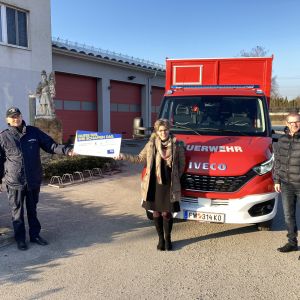 Unsere Betreuerin von der Niederösterreich Versicherung, Alexandra Weinhappel, überreichte uns einen Scheck für unser neues Versorgungsfahrzeug.
