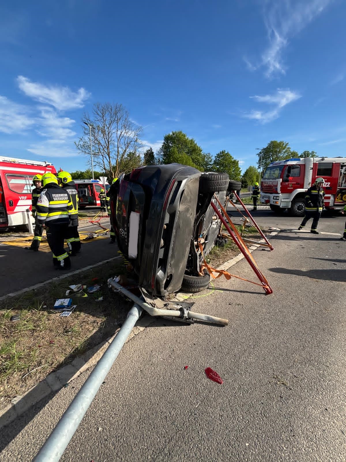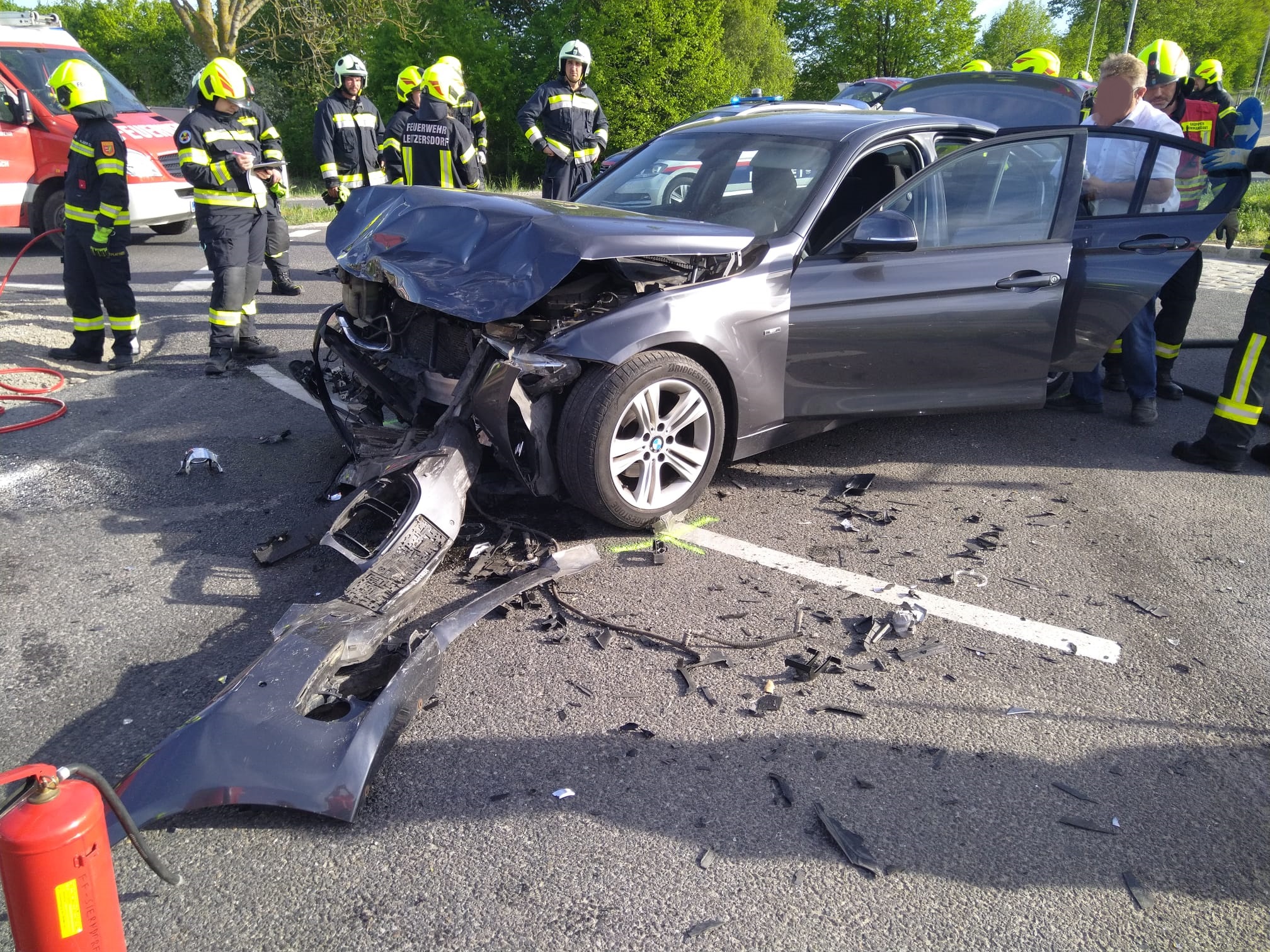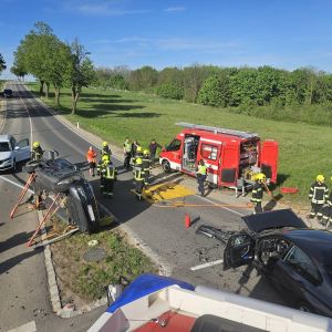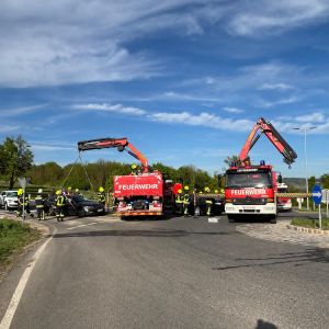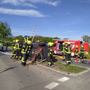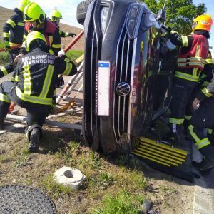 Bei unserem Eintreffen war die Fahrerin des BMW bereits aus dem Fahrzeug und wurde von Ersthelfern betreut. Der Fahrer des VW konnte sich nicht selbst aus dem Fahrzeug befreien. Nach Stabilisierung des Fahrzeuges wurde mit dem hydraulischen Spreizer die hintere Türe geöffnet um einen Zugang für einen Kameraden zur Betreuung des Lenkers zu schaffen. Anschließend wurde die vordere Tür geöffnet, der Fahrer konnte dann mit etwas Hilfe das Fahrzeug verlassen.