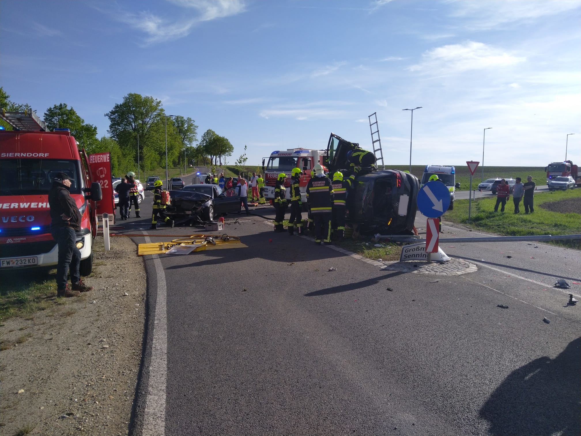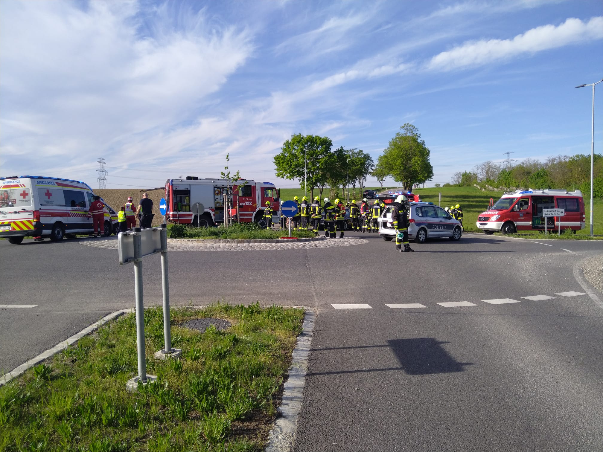 Am Montag Nachmittag wurden wir gemeinsam mit der örtlich zuständigen FF Hatzenbach und der FF Leitzersdorf zu einem Verkehrsunfall mit Menschenrettung beim Kreisverkehr auf der L31 zwischen Sierndorf und Hatzenbach alarmiert.