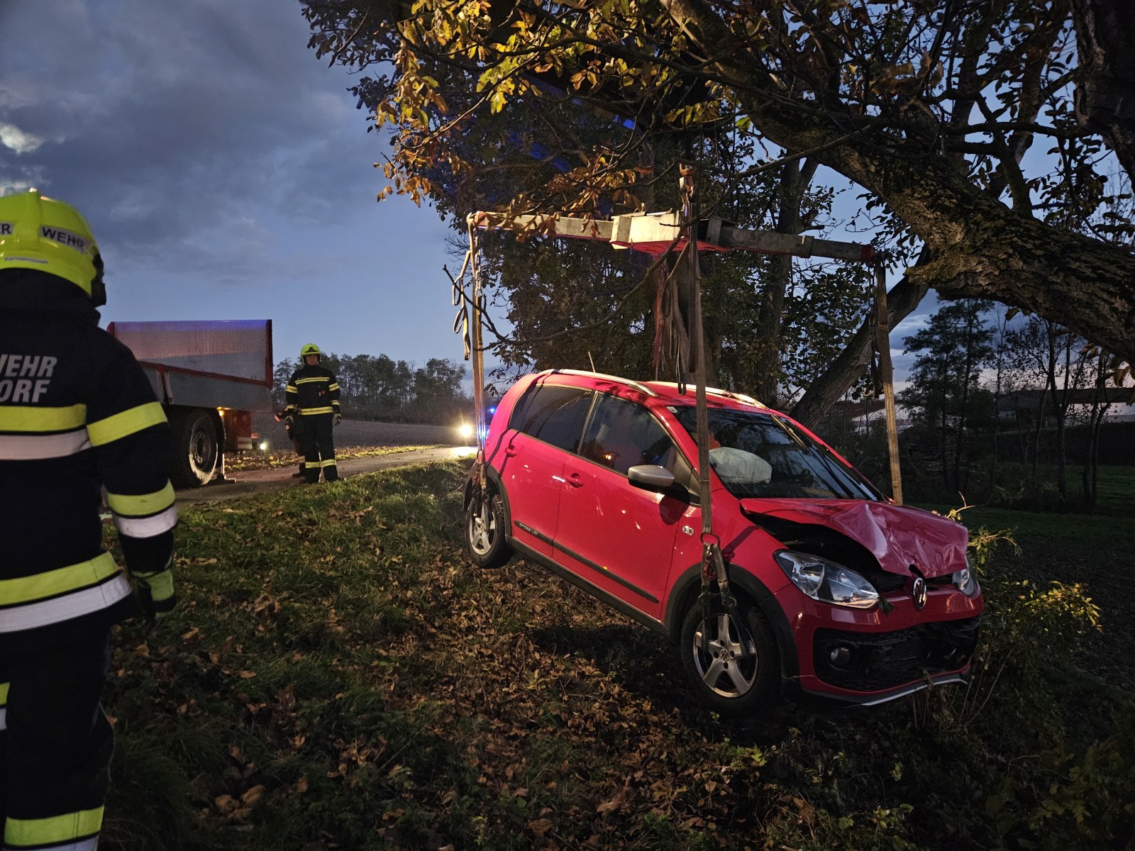 Am Montag Nachmittag wurde unser WLFA-Kran telefonisch zu einer Fahrzeugbergung zwischen Unterhautzental und Oberhautzental angefordert,