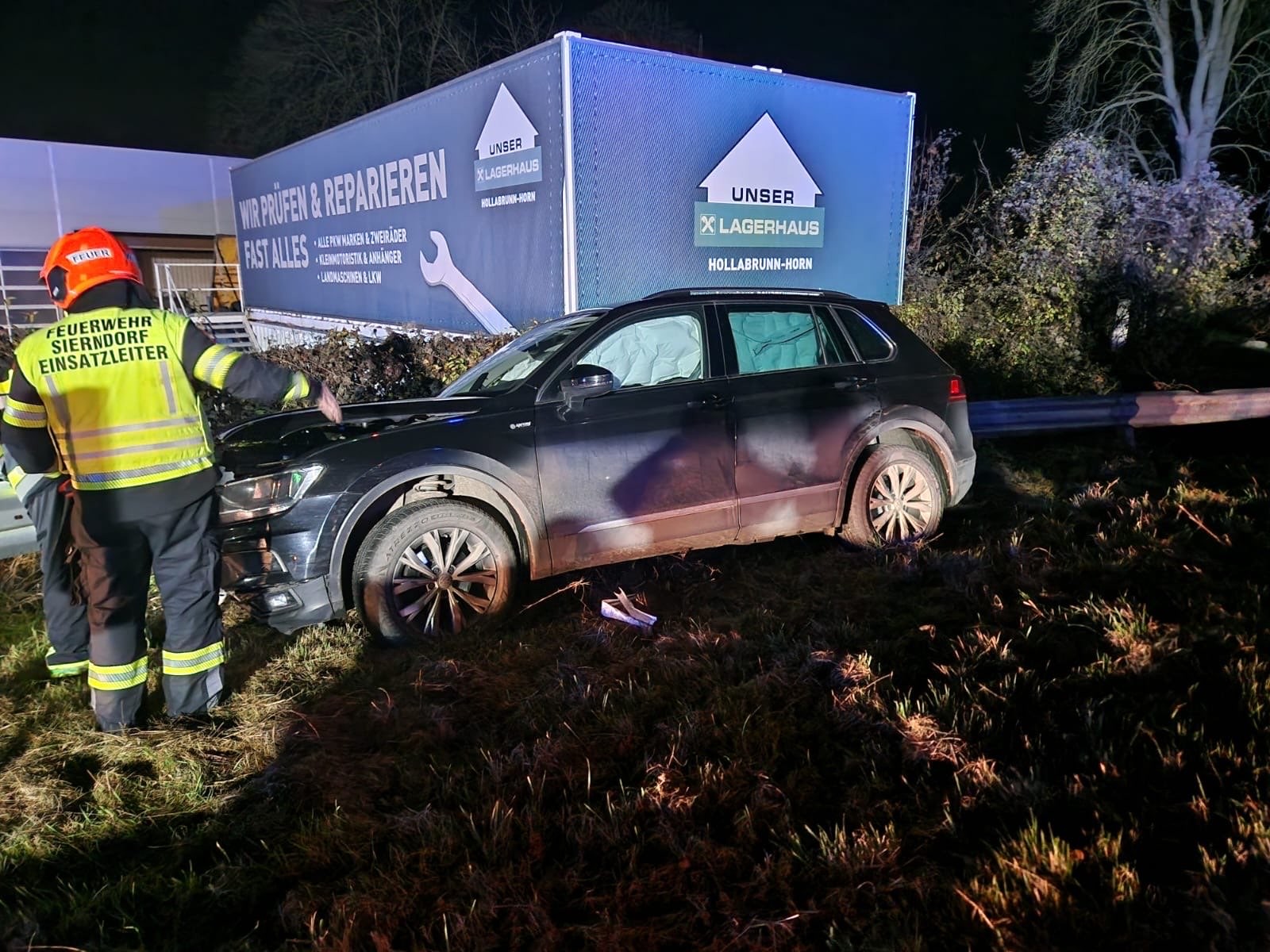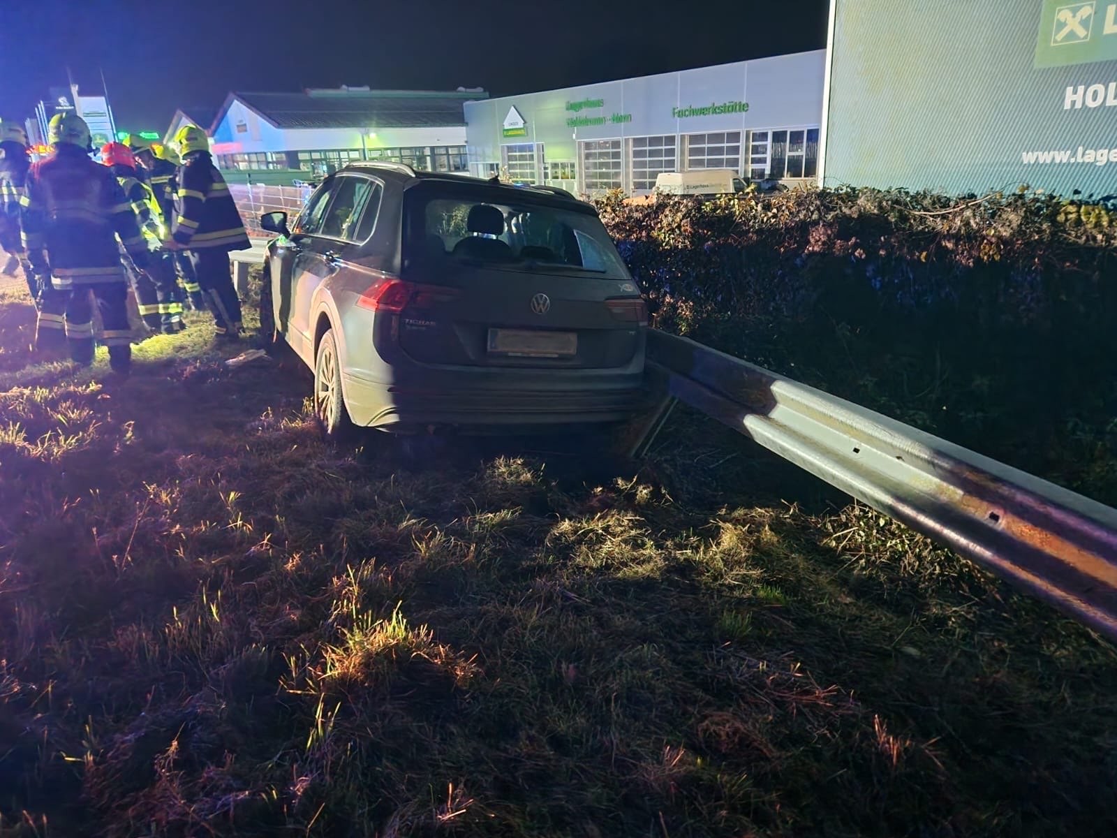 Ein PKW ist aus unbekannter Ursache von der Straße abgekommen und gegen eine Leitschiene geprallt. Der Lenker blieb dabei zum Glück unverletzt.