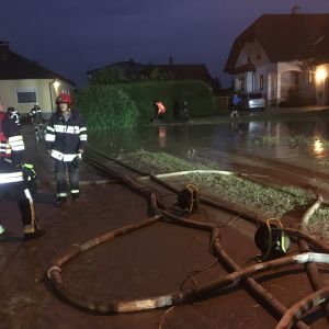 Von der Einsatzleitung bekamen wir den Auftrag mit der FF Hausleiten den Keller eines Einfamilienhauses leer zu pumpen, sowie das Waser auf einem überfluteten Straßenzug in den Bach zu pumpen.