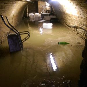 Aufgrund eines Bruches der Hauptwasserzuleitung eines Hauses wurde der Keller geflutet.Mittels 2 Unterwasserpumpen wurde das Wasser abgepumpt.
