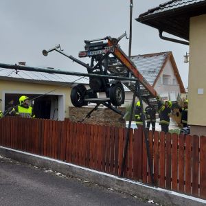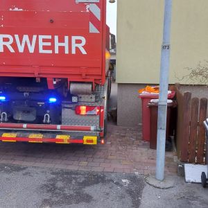 Für die Positionierung des WLFA-K in der engen Hauszufahrt musste ein Element des Gartenzaunes entfernt werden, danach konnte die Bergung des Gerätes mittels des Ladekrans erfolgen.