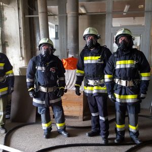 Nach Übungsende wurde die Übungsnachbesprechung durchgeführt, bei der alle eingesetzten Atemschutz-