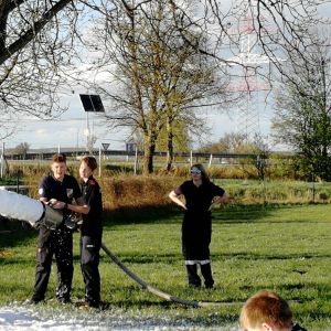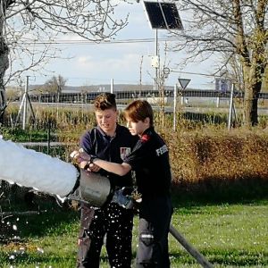 Es wurde dann nach einiger Zeit und ein paar Mannschaftswechseln vom Mittelschaumrohr aufs Schwerschaumrohr gewechselt. Dadurch konnten die Jugendmitglieder den Unterschied zwischen Mittel- und Schwerschaum erkennen.