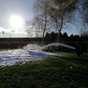 Die Kinder konnten hierbei im und mit dem Schaum spielen und konnten selbst am Mittelschaumrohr stehen, bzw. mussten sie auch selbst den Verteiler und den Schaumbehälter besetzen.