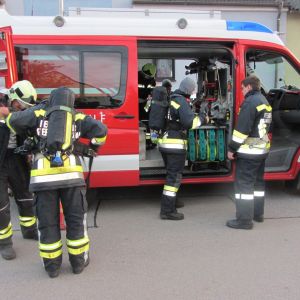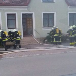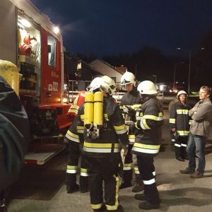 Auch bei der Atemschutzübung in Unterparschenbrunn waren zwei Stationen eingerichtet. Auf der einen Seite war eine vermisste Person aus dem verrauchten Haus zu bringen. Auf der anderen Seite war als Highlight ein Fire-Trainer eingerichtet um einen Zimmerbrand realitätsnah zu simulieren.